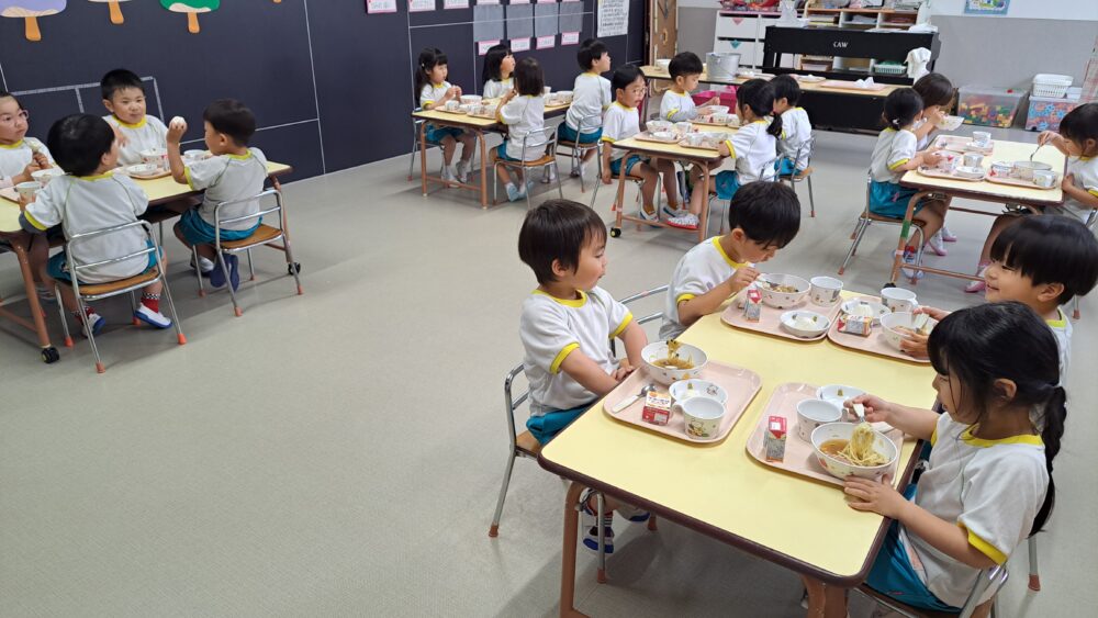 給食(しょうゆラーメン・肉まん・野菜ジュース)