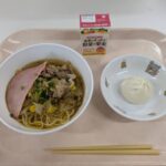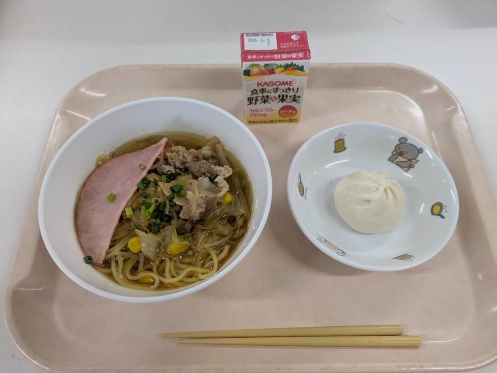 給食(しょうゆラーメン・肉まん・野菜ジュース)