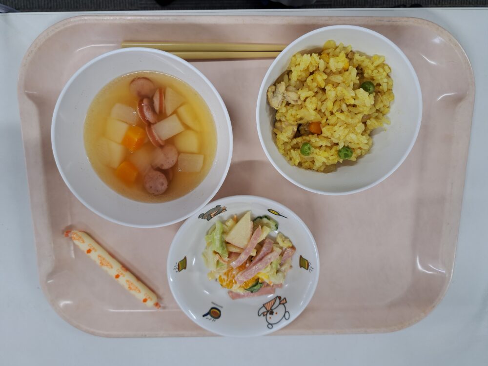 給食(メキシカンピラフ・マカロニサラダ・ポトフ・チーズスティック)