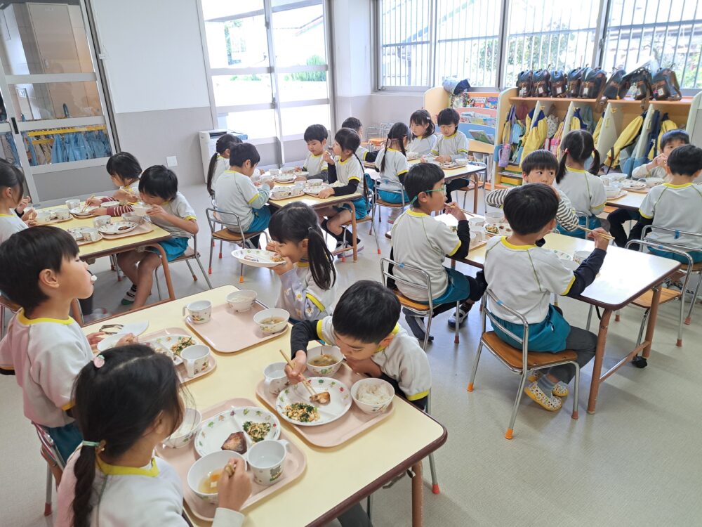 給食(ご飯・ブリの照り焼き・ほうれん草の白和え・ごぼう汁)