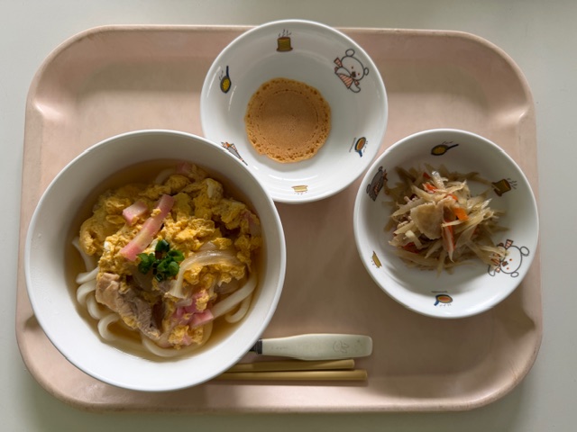 給食(ご飯・白身魚のフライ【オーロラソース】・スパゲッティサラダ・みそ汁)