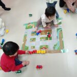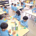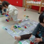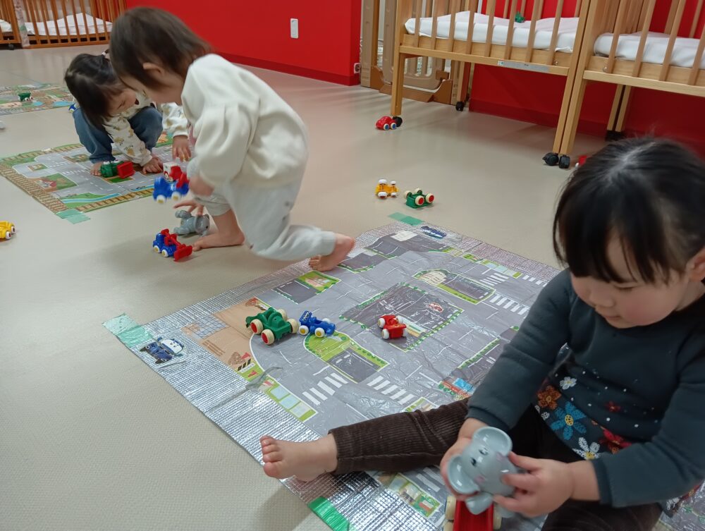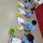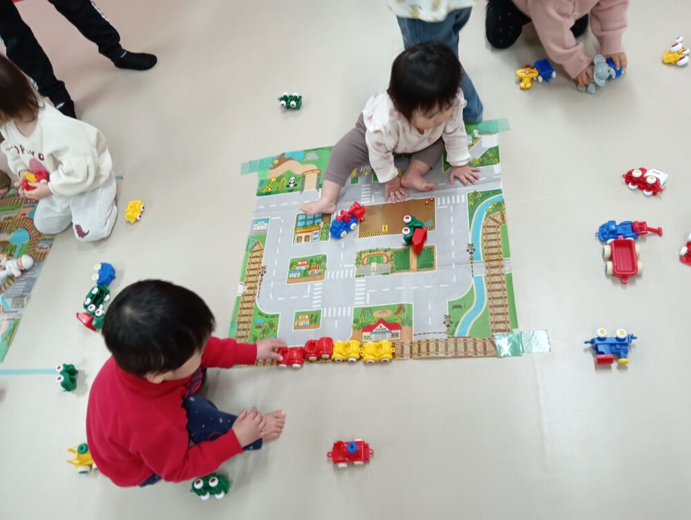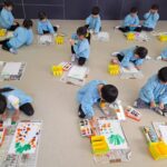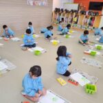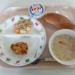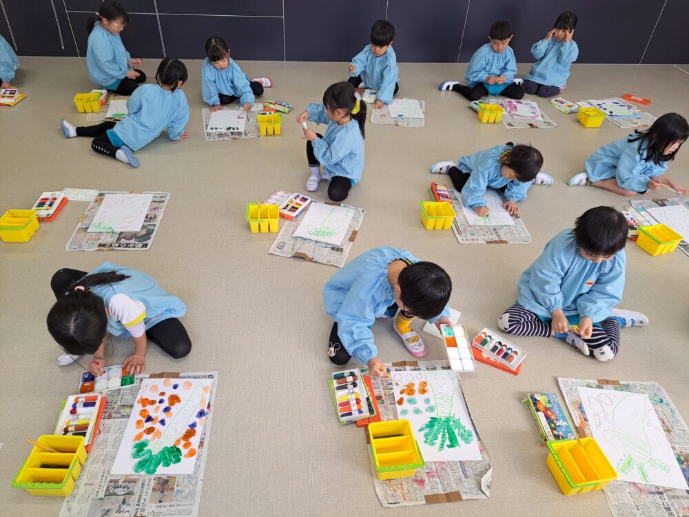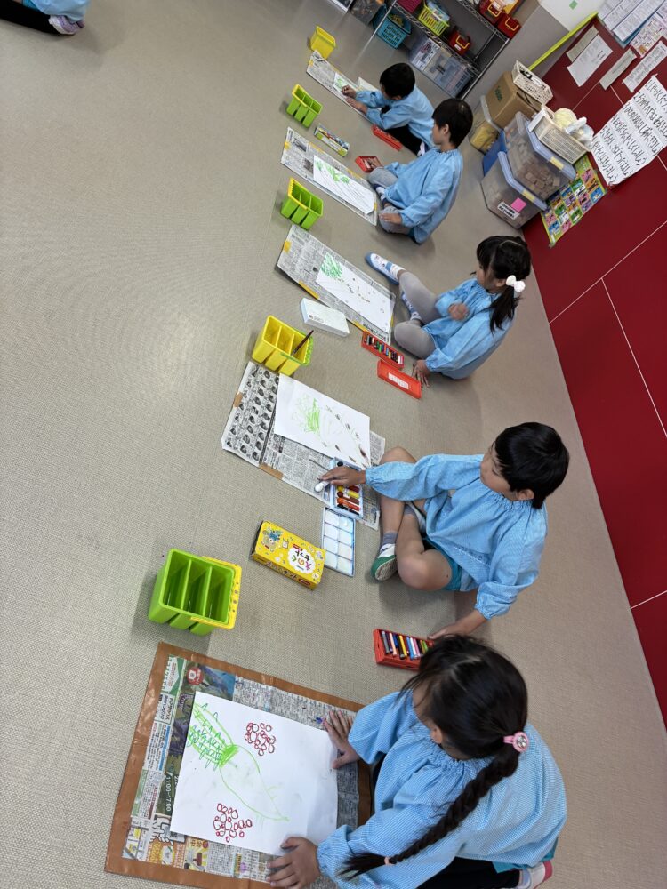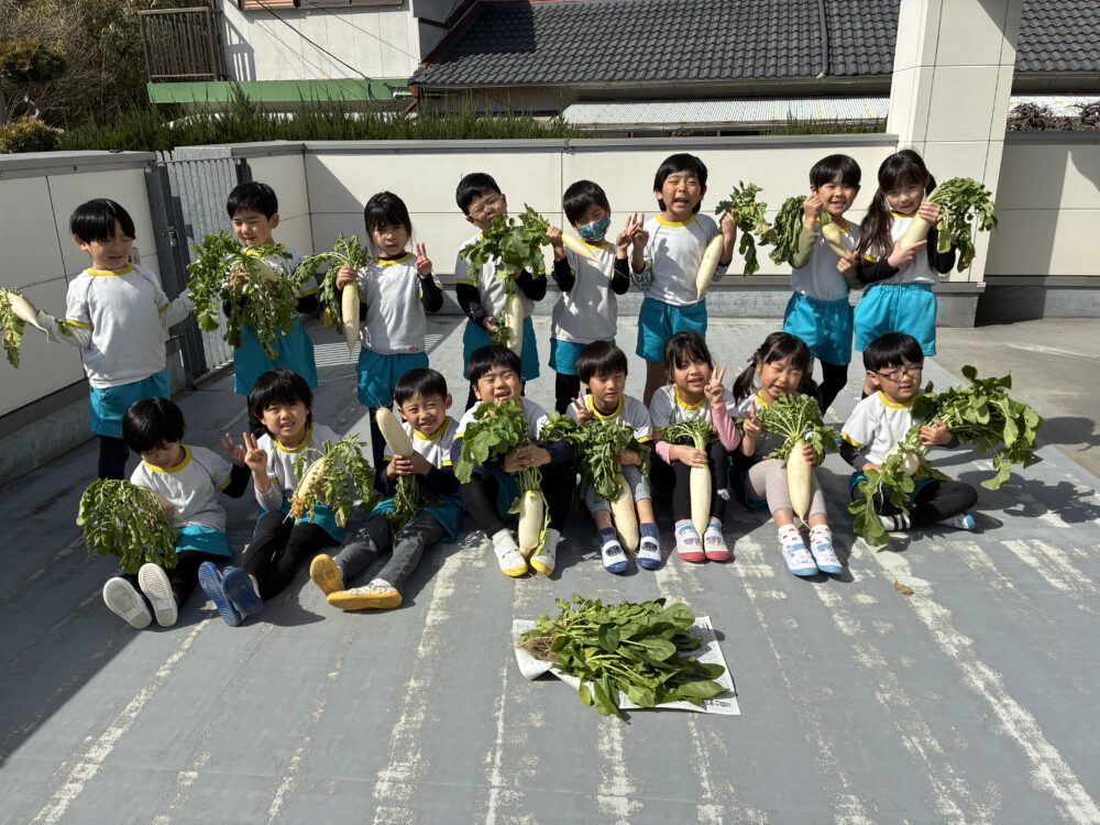 2026年 2月 19日(木曜日) 2月19日(木) 絵画教室(題材 大根) ひよこ組・ひな祭り製作(3歳児) デジタルタイム・大根収穫(5歳児)・マラソン(2歳児) 給食(コッペパン・照り焼きチキン・マカロニサラダ・豆乳スープ・コアコア)