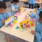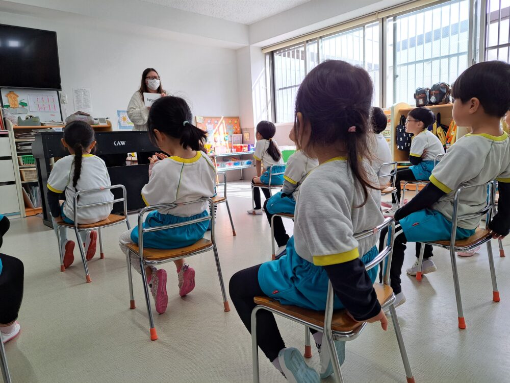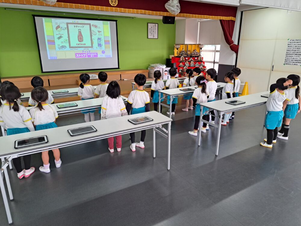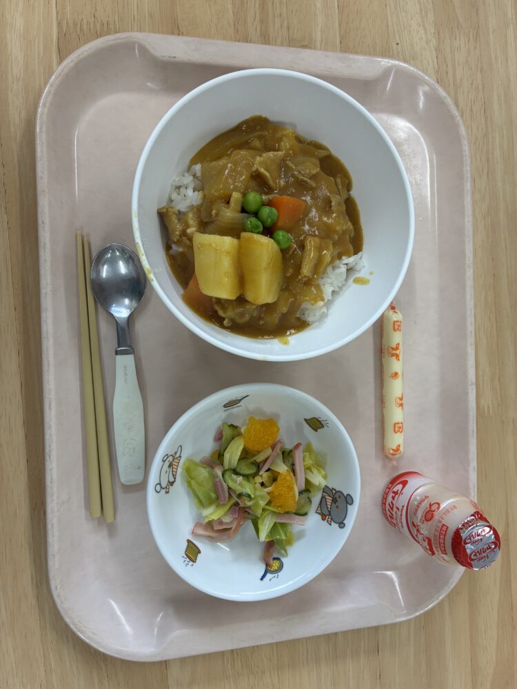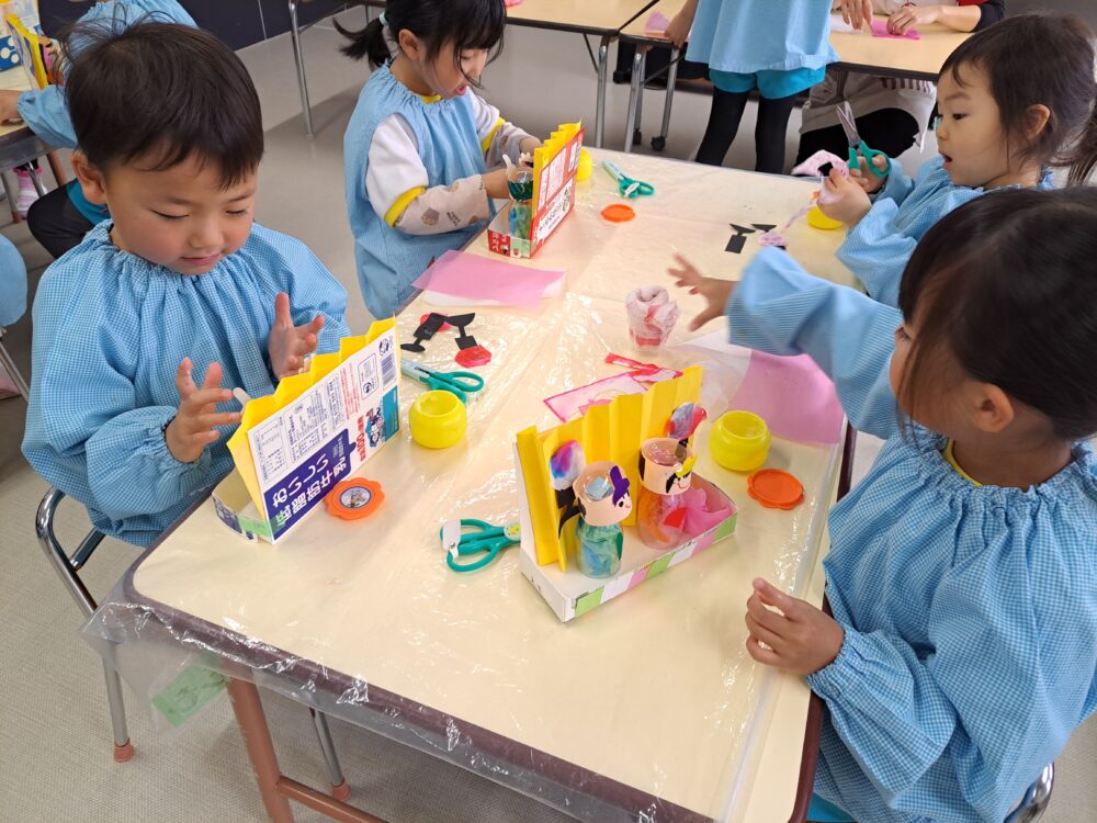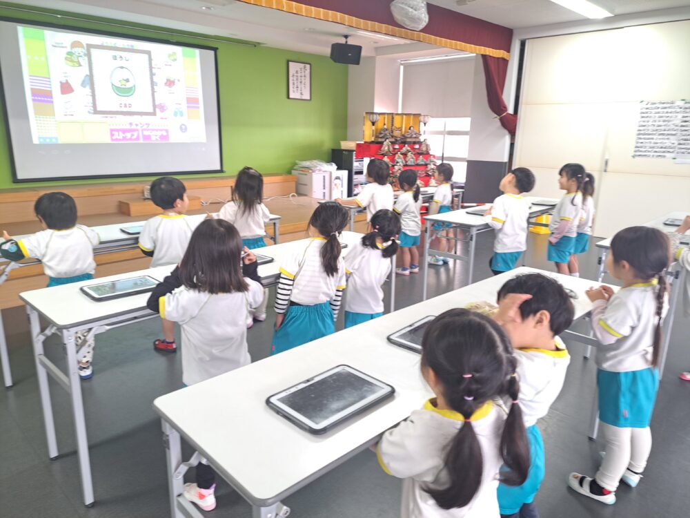2026年 2月 19日(木曜日) 2月19日(木) 絵画教室(題材 大根) ひよこ組・ひな祭り製作(3歳児) デジタルタイム・大根収穫(5歳児)・マラソン(2歳児) 給食(コッペパン・照り焼きチキン・マカロニサラダ・豆乳スープ・コアコア)
