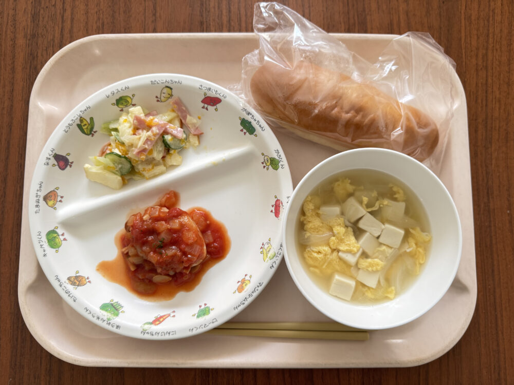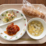 給食(キーマカレー・ナン・フレンチサラダ・コアコア)