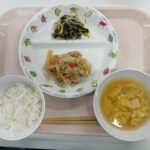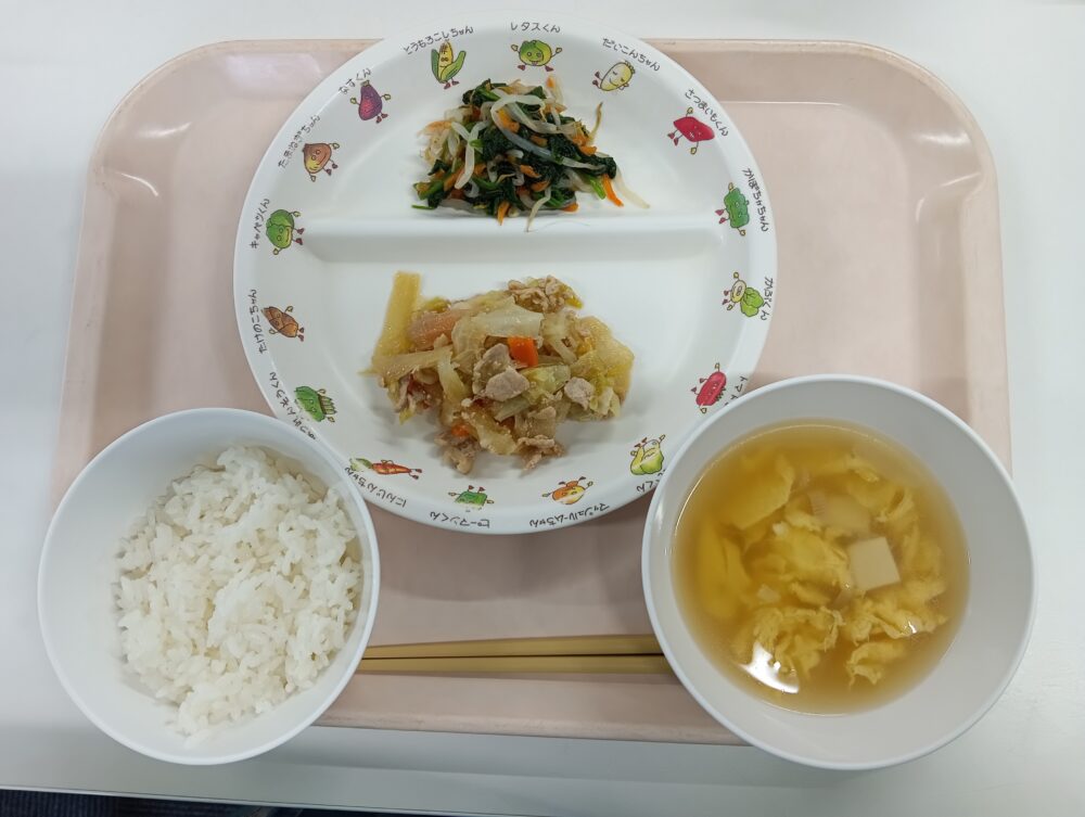 給食(ご飯・豚肉の中華炒め・ナムル・たまごスープ)