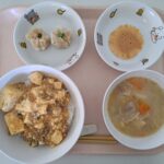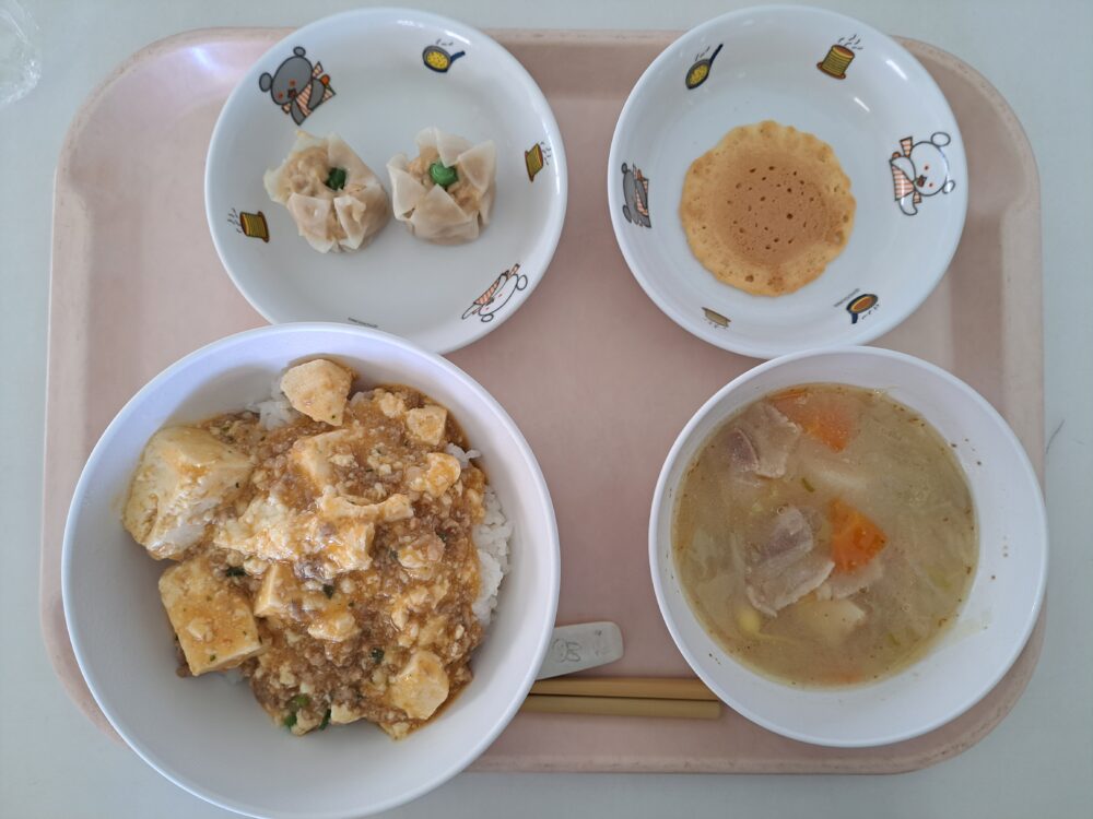 給食(マーボー丼・シュウマイ・豚汁・カルシウムせんべい)